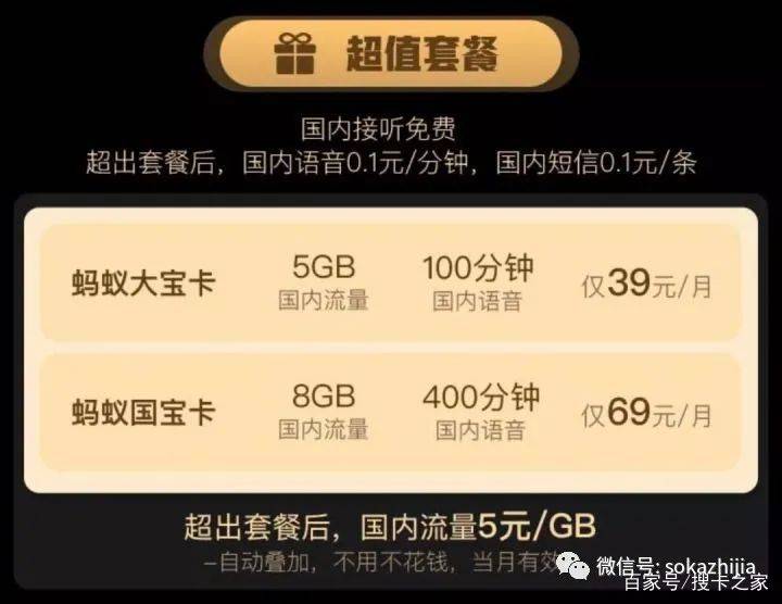 蚂蚁大宝卡资费介绍: