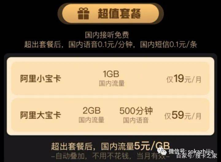 阿里宝卡资费: