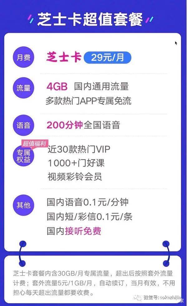 芝士卡资费介绍: